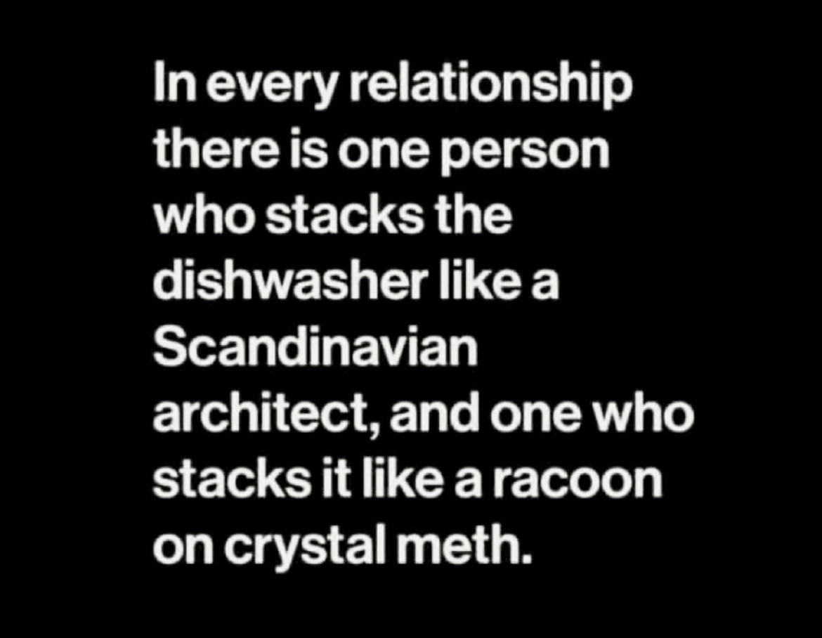 Yesterday I saw a meme that said in every relationship there is one person who stacks the dishwasher like a Scandinavian architect (Mitch) and one who stacks it like a racoon on crystal meth (Vickie) – Yep that’s us!